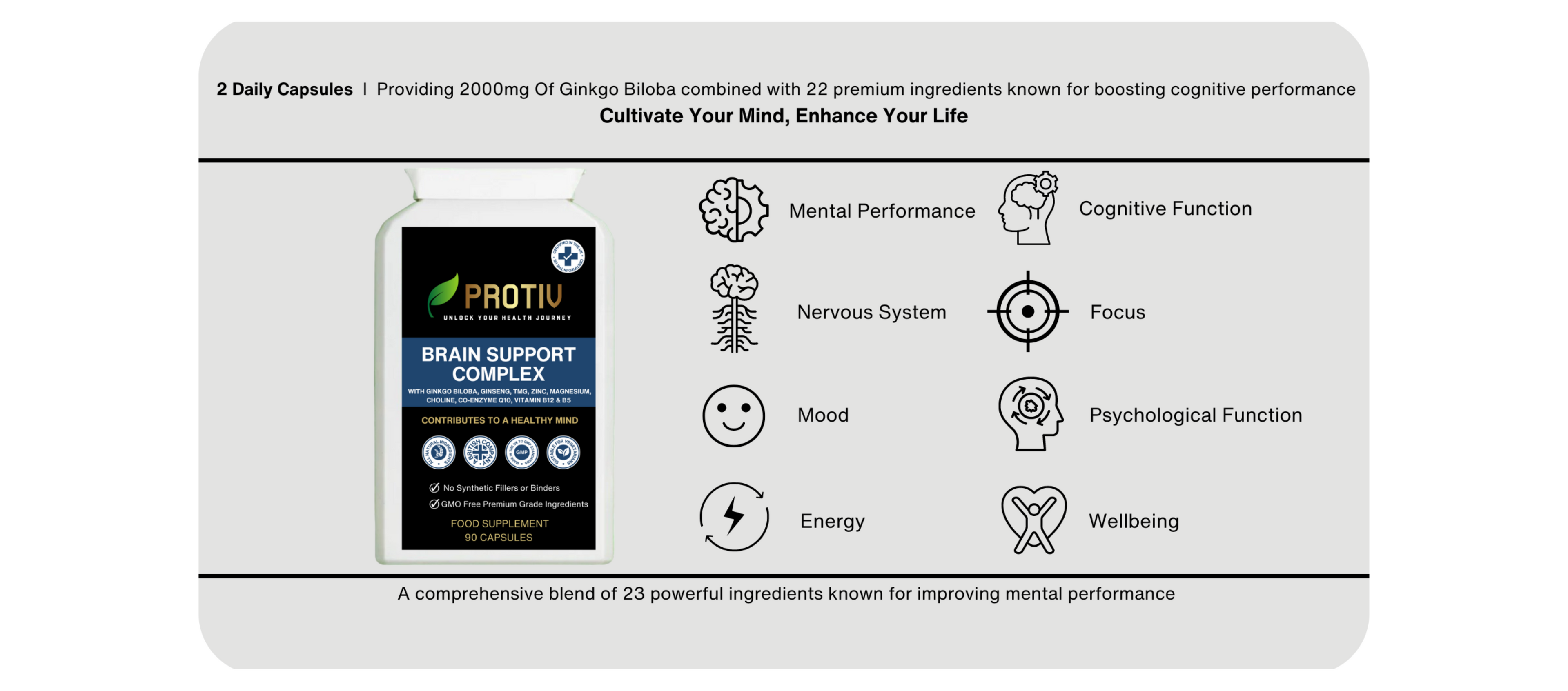 A comprehensive blend designed to support cognitive function, memory, focus, and mental clarity