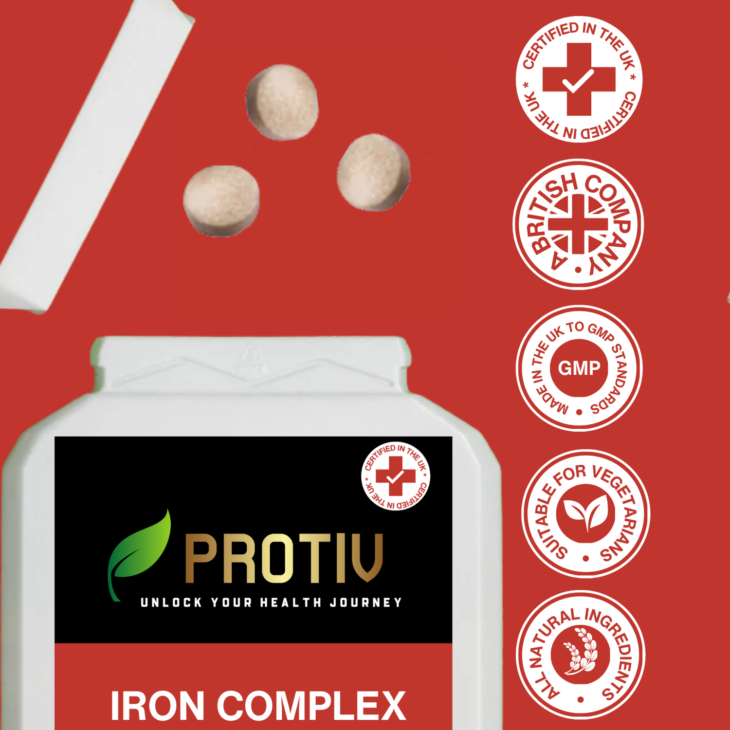 We recommend taking 1 tablet of our Iron Complex every day, ideally with food and water. Each bottle contains 180 tablets.